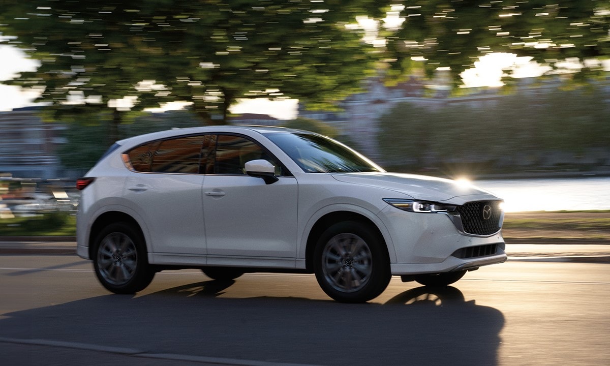 The CX-5 showcases Mazda's stunning Kodo design language with its bold front grille, sleek contours, and athletic stance. Expect to see heads turn all over Detroit when you drive one. Depending on the trim, exterior features may include LED headlights, fog lights, a power liftgate, roof rails, and your choice of stylish 17-inch or 19-inch alloy wheels. The available Advanced Keyless Entry makes accessing your CX-5 effortless.